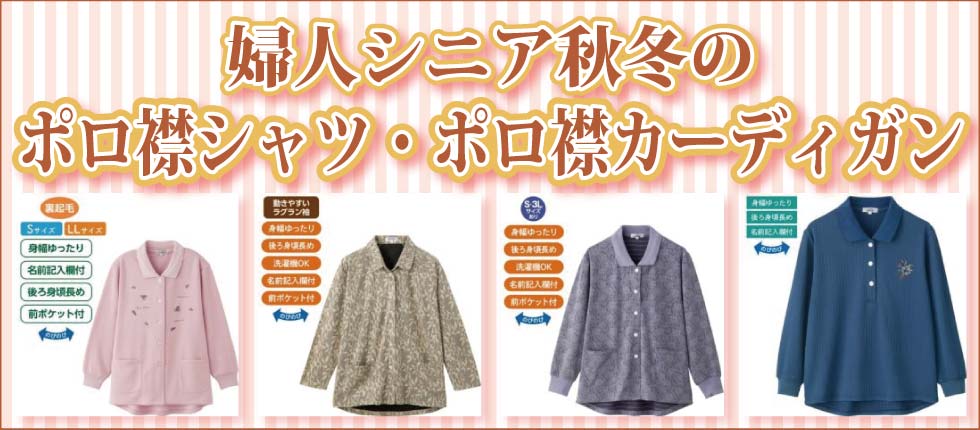秋冬のポロ襟シャツ&ポロ襟カーディガン各種勢揃い、お部屋着に好適です。
