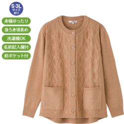 ふんわりストレッチワンタッチテープニットカーディガン後ろ身頃長め(婦人)