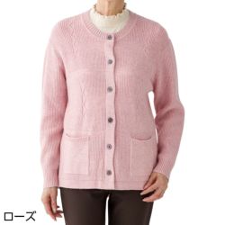 なめらか毛混ワンタッチテープニットカーディガン後ろ身頃長め(婦人)