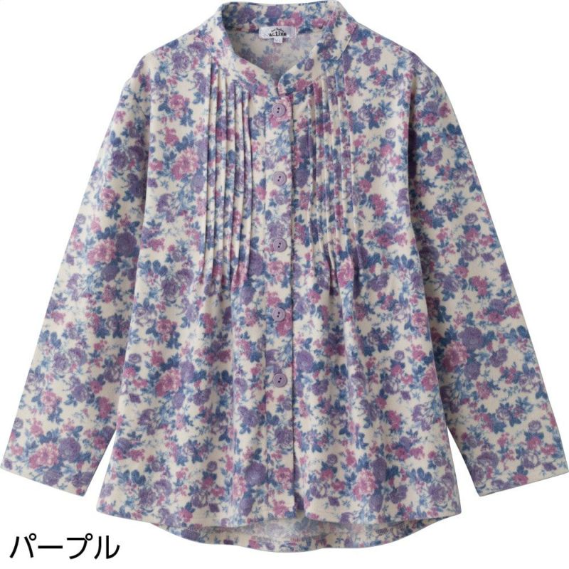 ふんわり微起毛斜め釦ホールピンタックブラウス(婦人)
