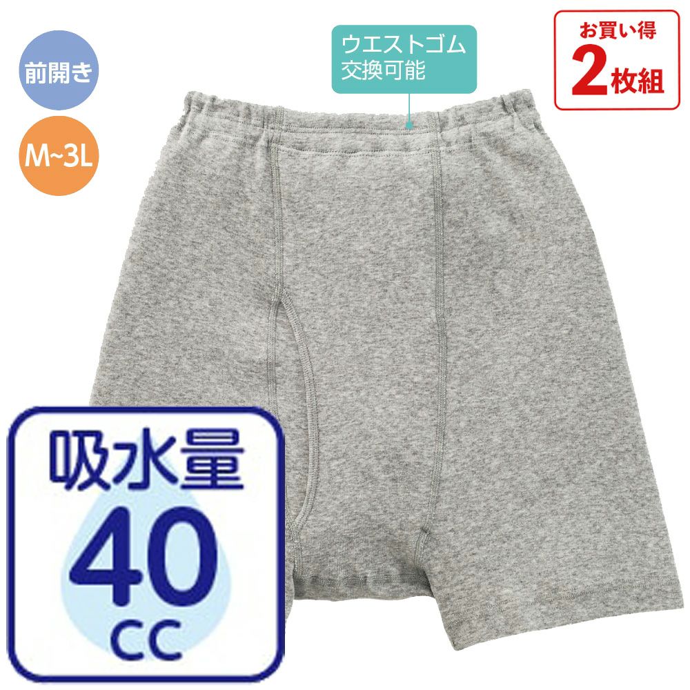 他の画像を見る [吸水量40cc]安心快適申又(2枚組)(紳士) ゴム入替え可 抗菌防臭 消臭 吸水量40cc にじみ出し防止 大きいサイズあり ¥ 3,938 税込 〜 ¥ 税込 通常の申又と同様にはける失禁パンツ。 サイズ M、L、LL 詳細を見る お気に入りに登録する