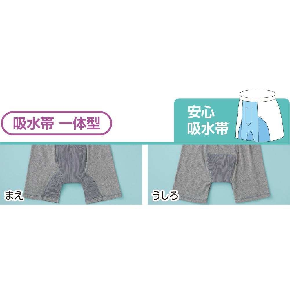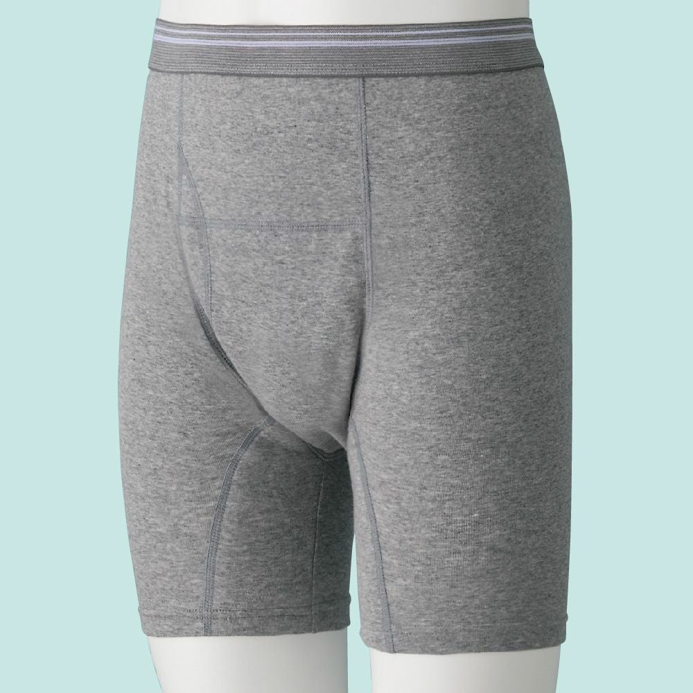 他の画像を見る [吸水量80cc]安心快適ロングボクサーブリー(紳士) 抗菌防臭 吸水量80cc 大きいサイズあり ¥ 3,740 税込 サイドパッドにより内腿部分への漏れにも対応。 サイズ M、L、LL 日本製 カートに入れる お気に入りに登録する