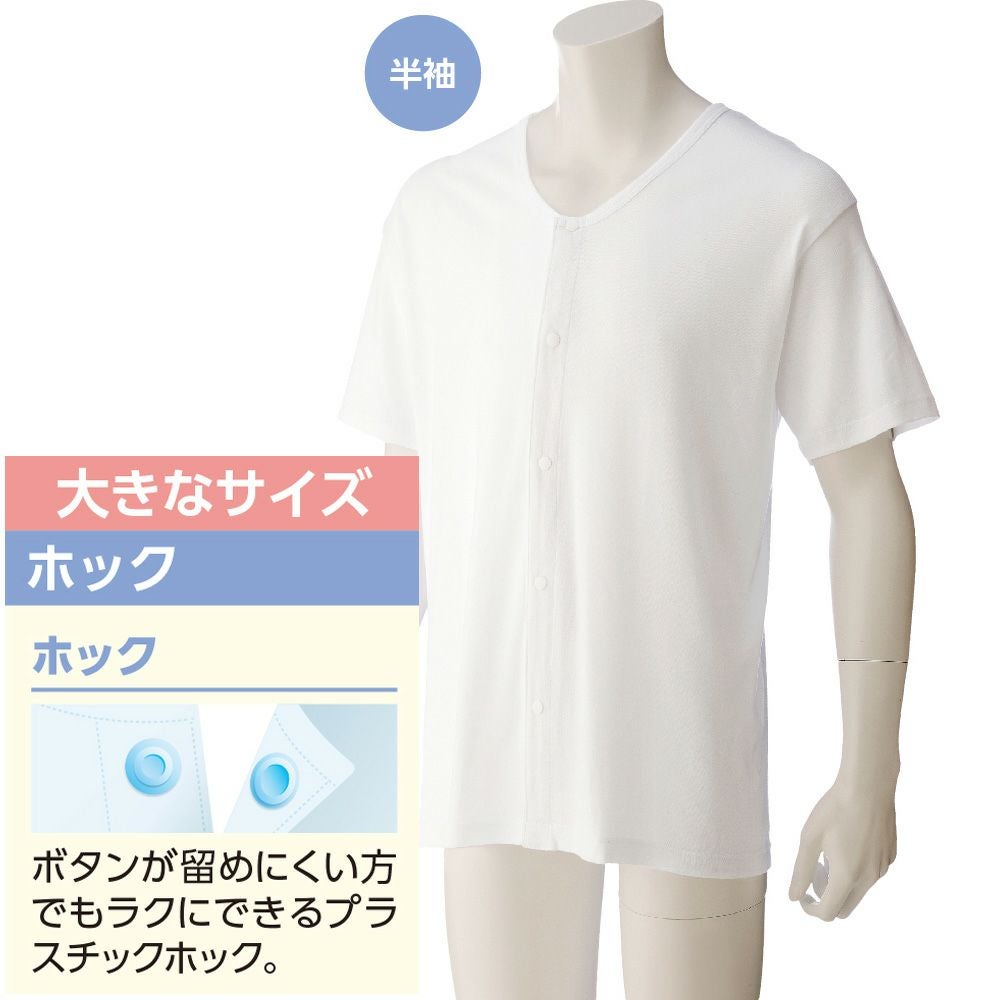 他の画像を見る 半袖ホックシャツ(2枚組)(紳士) 綿100% 着脱らくらく ホックボタン 抗菌防臭 消臭 小さいサイズあり 大きいサイズあり ¥ 3,168 税込 着脱がすばやくできるホック留めの肌着です。 サイズ S、M、L、LL カートに入れる お気に入りに登録する