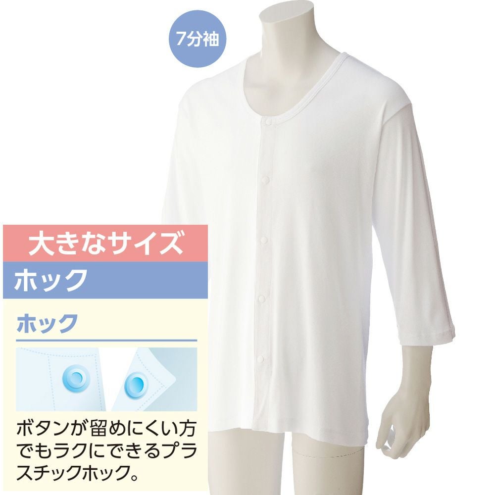 他の画像を見る 7分袖ホックシャツ(2枚組)(紳士) 綿100% 着脱らくらく ホックボタン 抗菌防臭 消臭 小さいサイズあり 大きいサイズあり ¥ 3,278 税込 着脱がすばやくできるホック留めの肌着。 サイズ S、M、L、LL カートに入れる お気に入りに登録する