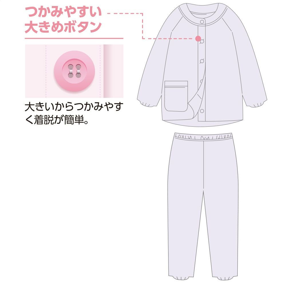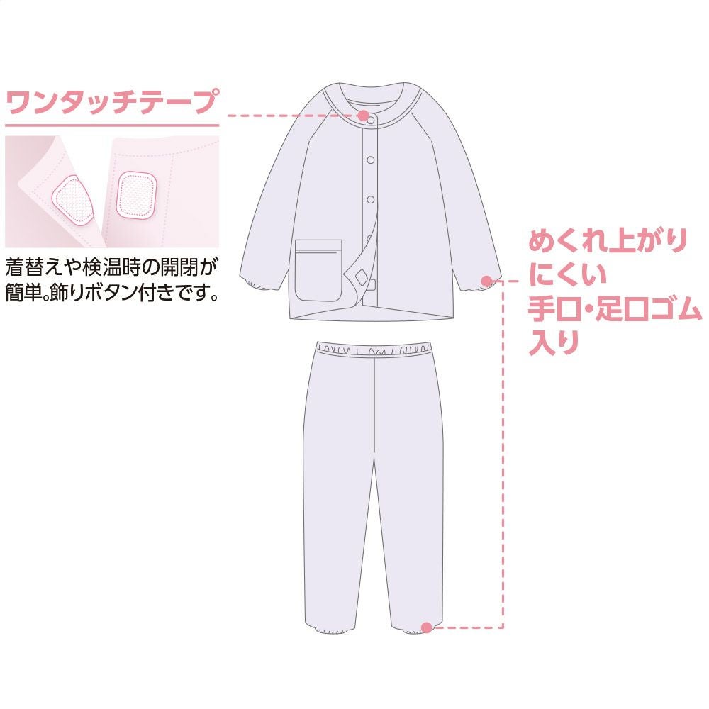 他の画像を見る フルオープンパジャマ(婦人) 綿100% ワンタッチテープ ファスナー仕様 着脱らくらく 抗菌防臭 小さいサイズあり 大きいサイズあり ¥ 8,778 税込 両脇ファスナーで着替えやすさ抜群 サイズ S、M、L、LL カートに入れる お気に入りに登録する