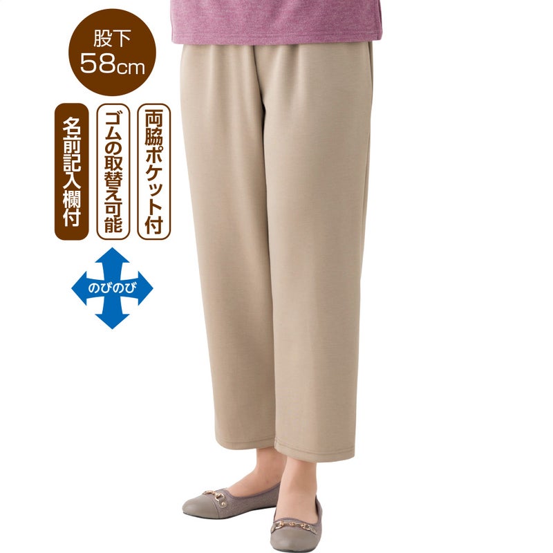○ゆったりめのウエストゴムで引上げやすい。