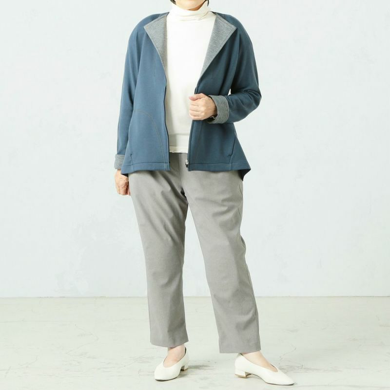 後ろの丈が長いシルエットでふんわりと羽織ることができます。