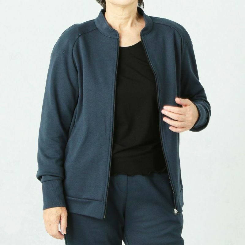 お家でもちょっとした近居への外出でも日常的に着られるジャージ素材のブルゾン。