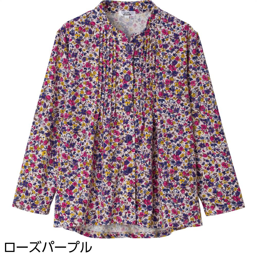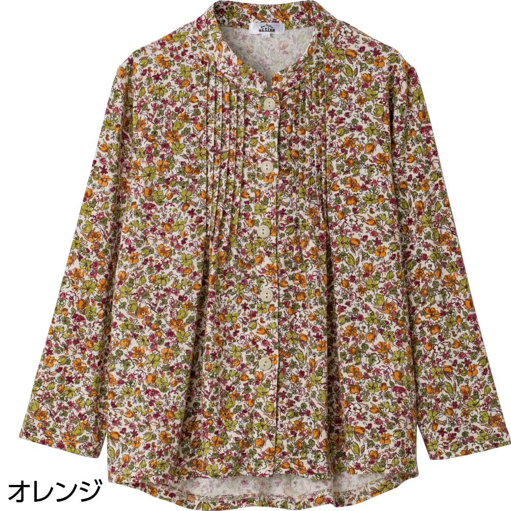 7分袖斜め釦ホールピンタックブラウス(婦人)