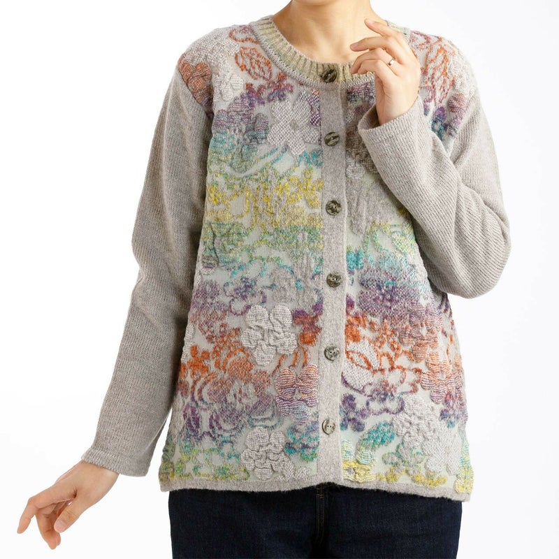 ★ 秋冬 ニット カーディガン 羽織 かすり糸 花ふくれ柄カーディガン 日本製