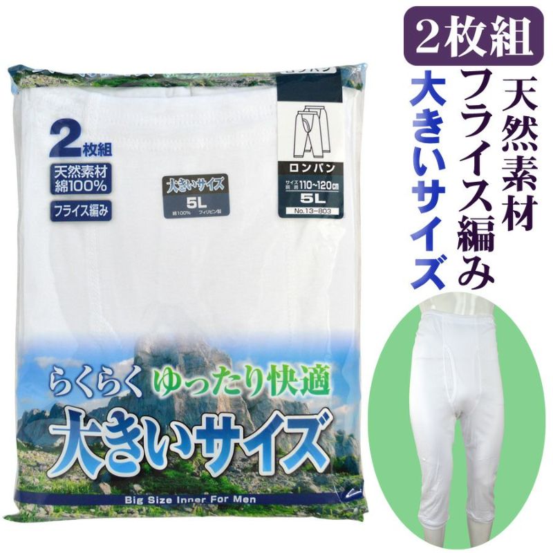 5. 紳士天然素材綿100%フライス編みロンパン(2枚組)大きいサイズ 3L、4L、5L