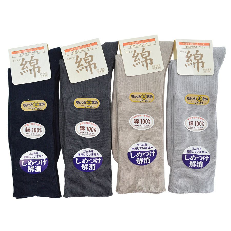 他の画像を見る 超ラクラクゆったり 紳士いたわり設計表糸綿100%しめつけ解消靴下大きめサイズ 27~29cm 日本製色お任せ受注 ¥ 858 税込 しめつけず、優しく爽やかな履き心地の靴下です。 カートに入れる お気に入りに登録する