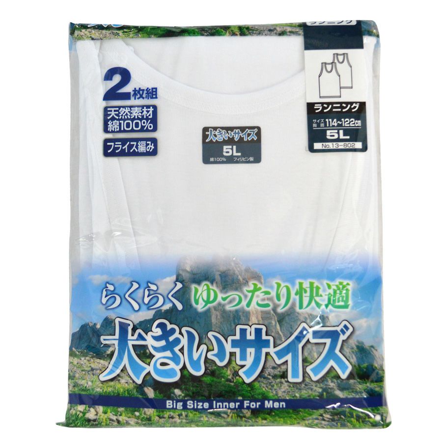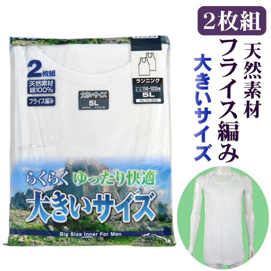 他の画像を見る らくらくゆったり快適 紳士天然素材綿100%フライス編みランニング(2枚組)大きいサイズ 3L、4L、5L 綿100% 大きいサイズあり ¥ 1,980 税込 ゆったり着れる天然素材綿100%の大きいサイズです。 サイズ 3L、4L、5L カートに入れる お気に入りに登録する