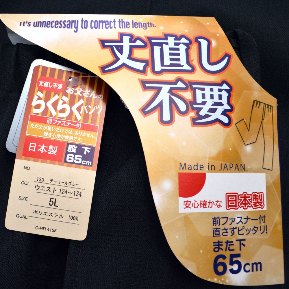 他の画像を見る 大きいサイズの日本製 お父さんのらくらくパンツ(東レLUANA®超静電性繊維)股下65cmサイズ 4L、5L 日本製 大きいサイズあり ¥ 3,960 税込 在庫なし 前ファスナー付き、丈直し不要で直さずピッタリ! サイズ 4L、5L 日本製 カートに入れる お気に入りに登録する