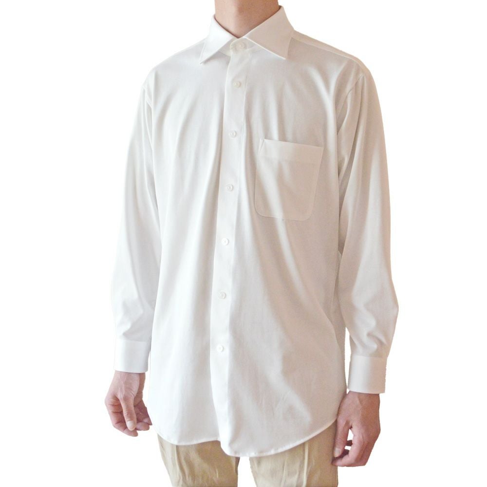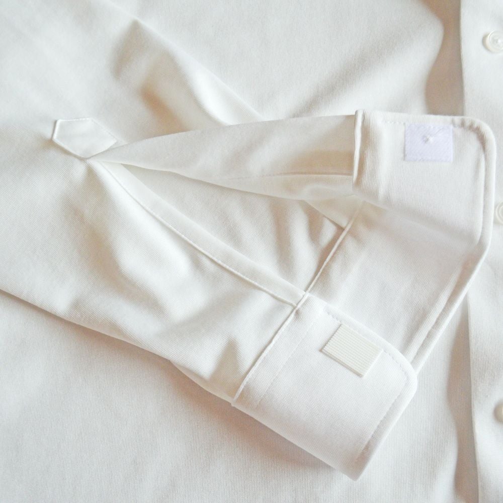 他の画像を見る 《新発売》マジックテープ留めで着脱しやすいニットYシャツ [G&B×FLEXJAPAN共同開発]紳士ワンタッチニットドレスシャツ(白ワイシャツ)サイズ M、L、LL 日本製 大きいサイズあり ¥ 9,790 税込 シャツの専門メーカーの老舗『フレックスジャパン』と当店が共同開発した、ここでしか手に入らない完全オリジナルのワンタッチニットドレスシャツ! サイズ M、L、LL 日本製 カートに入れる お気に入りに登録する