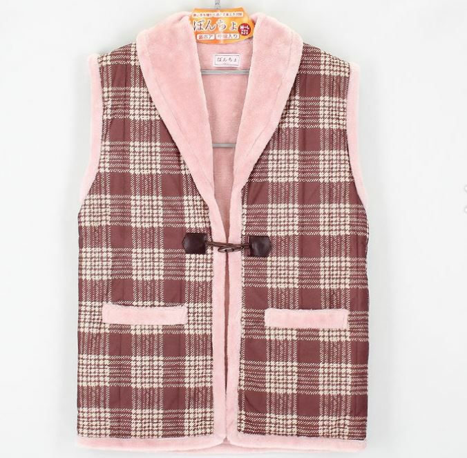 3. 婦人中綿ポンチョ裏マイヤー室内着柄格子柄サイズ M~L