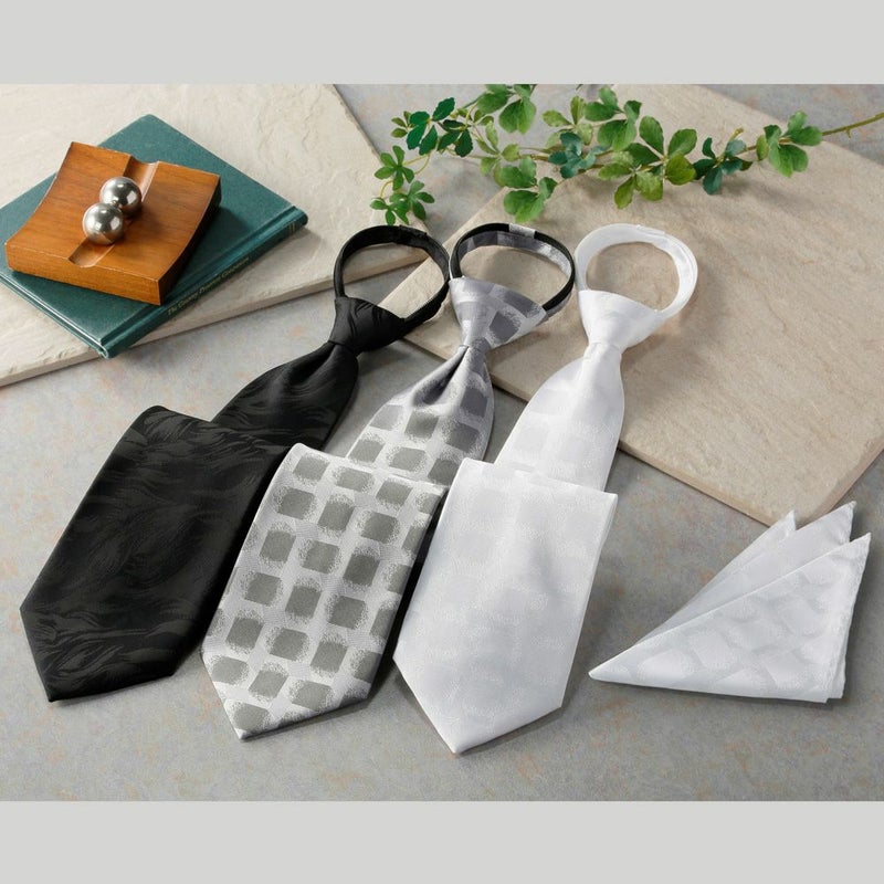 あらかじめ整った結び目が作られているので型崩れがなく、裏のファスナー式の小剣をひくだけで、簡単に見栄えよく装着できます。