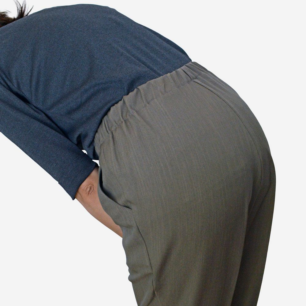 腰からお尻、太もも部分が特許品腰曲がりズボンよりも少し細身にスマートにできています。
