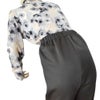その立体裁断でお作りしているので、後ろ身が長く、おしり周りがたっぷりしており、動きやすく、立っても座っても背中がでてしまう事がなく、きれいにお召しいただく事ができます。