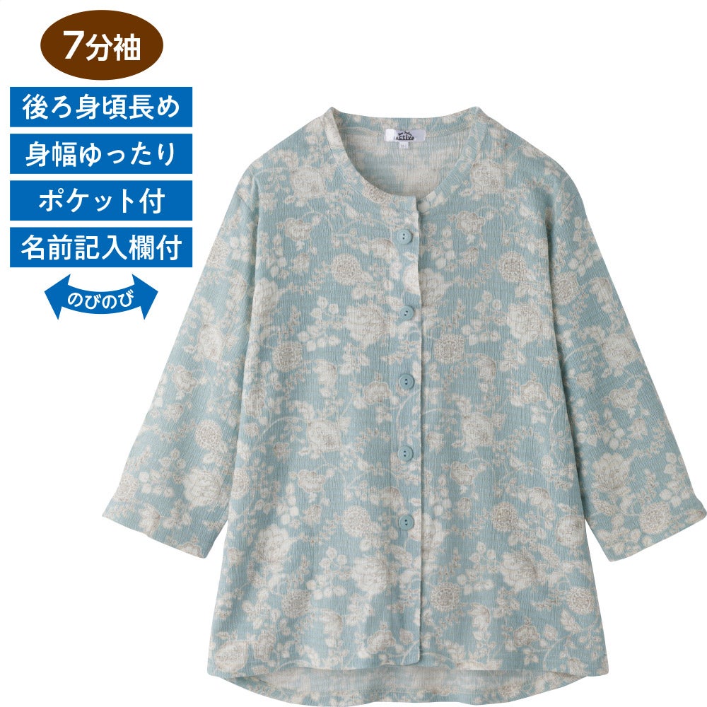 婦人の腰曲がり7分袖前開きTシャツ|人気ランキング