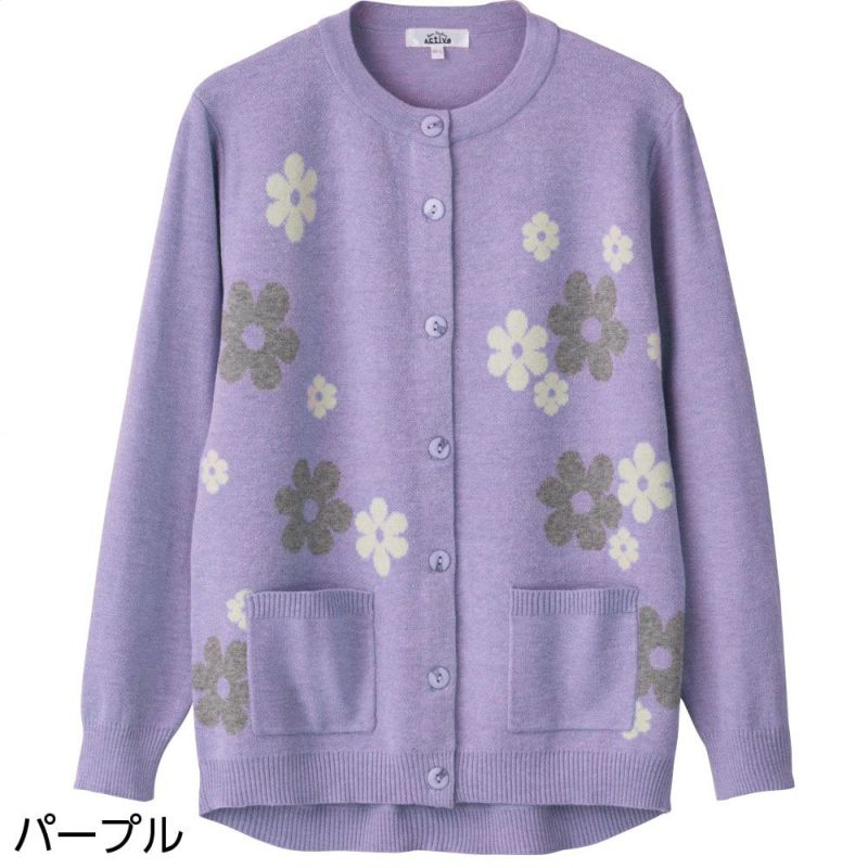 5. もちもちニット斜め釦ホールカーディガン(婦人)