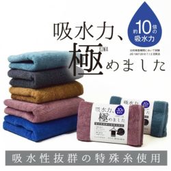 極吸水カラーバスタオル約60㎝×120㎝特殊糸『スーパー甘撚り』を使用で驚きの吸水力!各同一色3枚組
