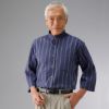 4. [Frannco Collezioni]紳士ストライプ柄しじら織七分袖スタンド衿シャツ2枚組サイズ M、L、LL
