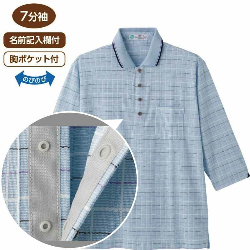 麻混スナップ釦7分袖ポロシャツ(紳士)