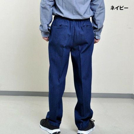 お直し不要のデニム素材の総ゴムズボンです。