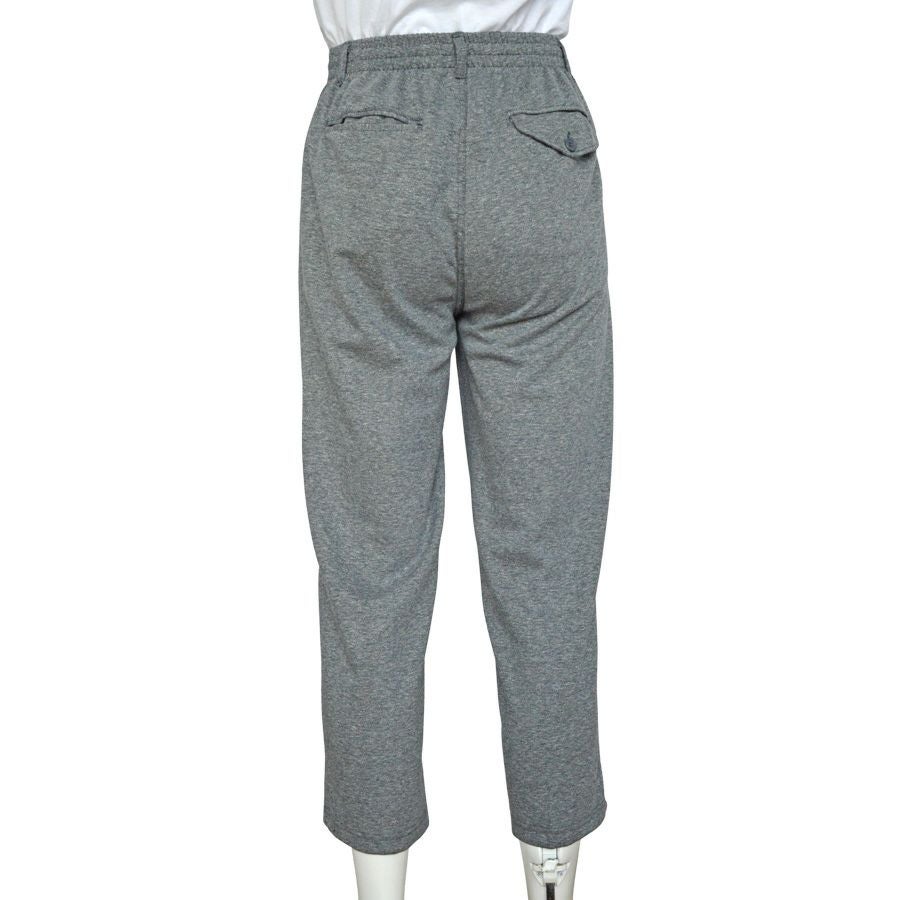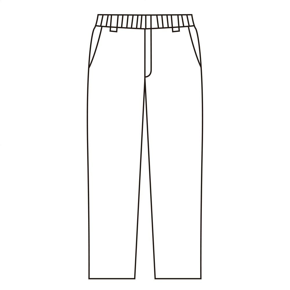 後ろゴムズボンは脇からうしろにかけてゴムになっています。着心地はややゆったり、折り目もすっきりとついています。