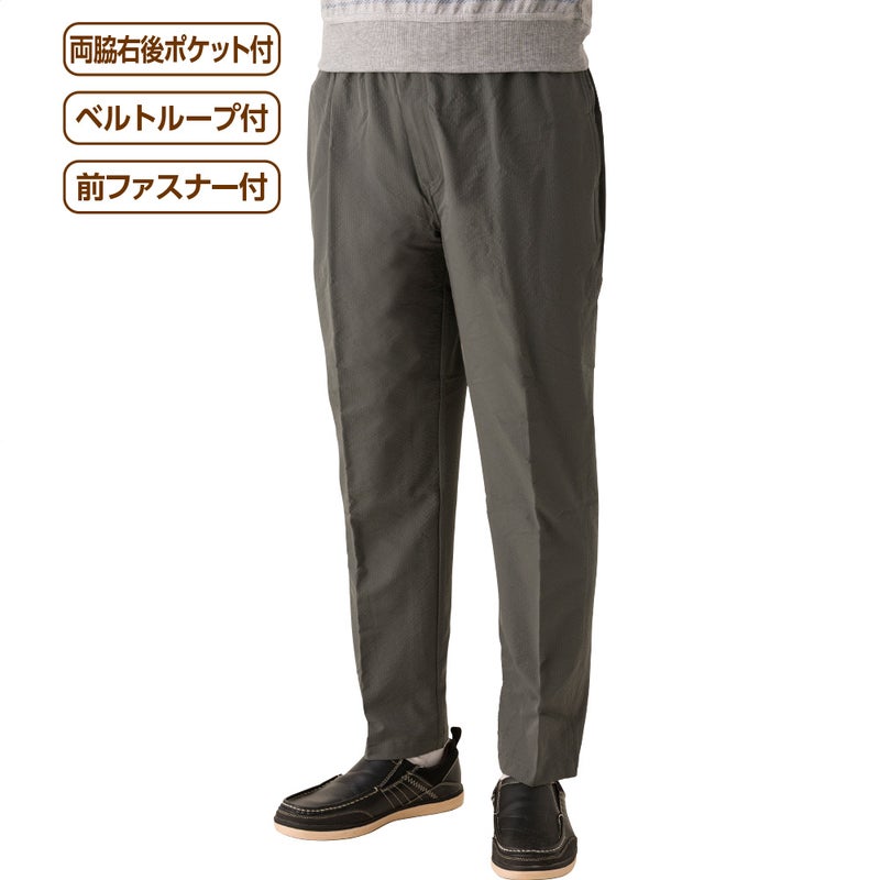 前開きタイプで脱ぎはきしやすく、ウエスト総ゴムではき心地らくらく。