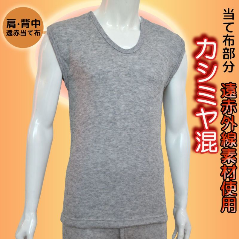 ☆紳士カシミヤ混長袖U首肌着(当て布部分遠赤加工)