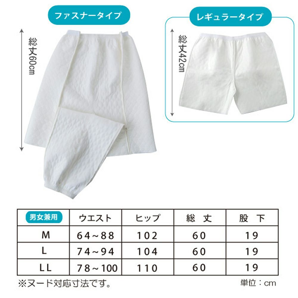②介護度が高くなるにしたがって足元まで全開するタイプとがあります。洗い替え用に、ズボンだけの商品もございます。(両側ファスナー全開)