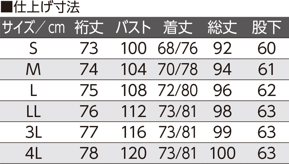 ■ JIS規格 ウエスト・ヒップ サイズ表(cm)