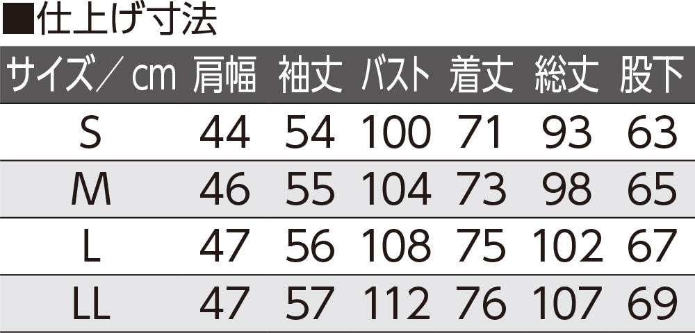 ■ JIS規格 ウエスト・ヒップ サイズ表(cm)