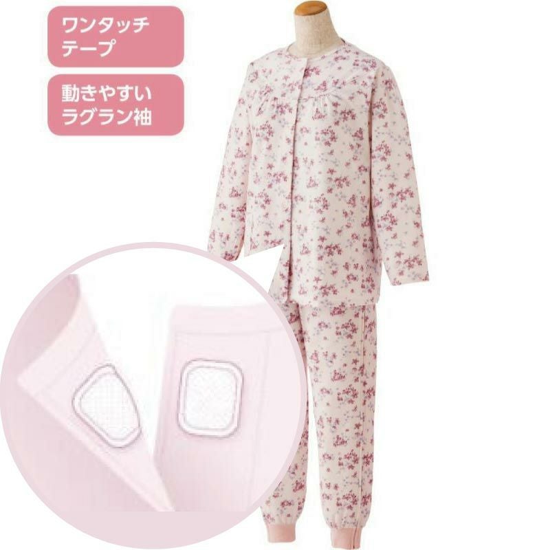 着替えや検温時の開閉が簡単。飾りボタン付で見た目は普通のパジャマです。