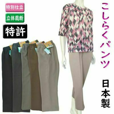 婦人柔らかゴム腰曲がりズボン(特許腰らくパンツ)股下58cm(オールシーズン用)サイズ M、L、LL、3L 日本製