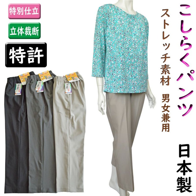 強力なストレッチが効いた伸縮性のある素材を使用したこしらくパンツ