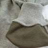 生地はしっかりしたあまり伸縮性のないスウェット素材となっており、内側はややつるっとした感じで肌当たりが良くなっております。