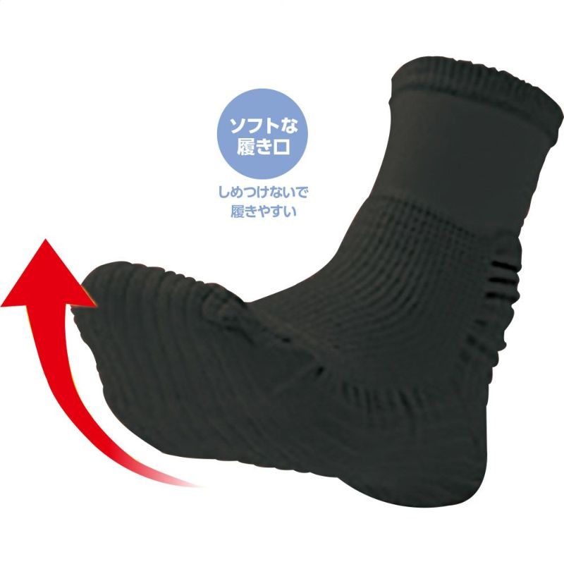 異なる編み方を組み合わせることでストレッチ性、バランス力、ズレ防止などの観点から足先をサポートし、把持力(つま先の掴む力)を強化します。
