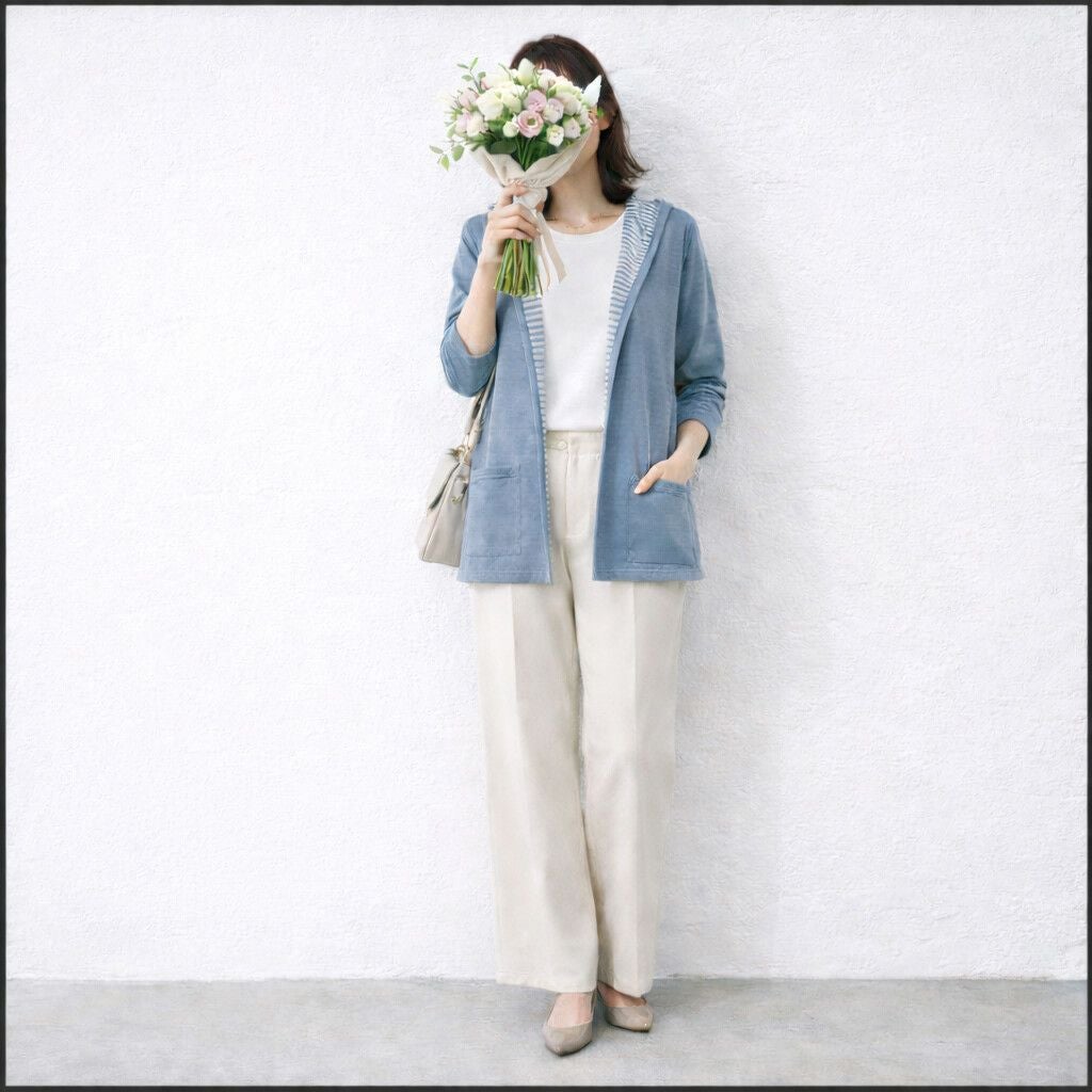 普段使いのお部屋着や、ご近所へのお出かけ着として気軽に着れます。
