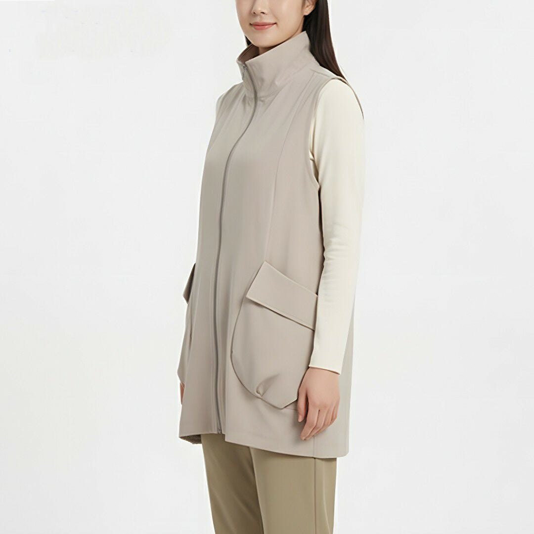 ファスナー合わせが不要の、お腹部分までで止まる長めのファスナー