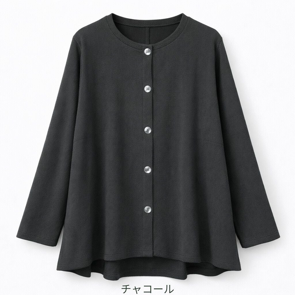 [レビュー★★★★★](商品番号 821176 婦人ニット斜め釦ホール丸首カーディ後ろ身頃長めサイズ M~L、LL、3L)(春夏商品のためワンタッチテープ留めカーディガン・ベストの商品ページに掲載)