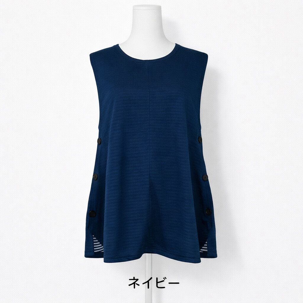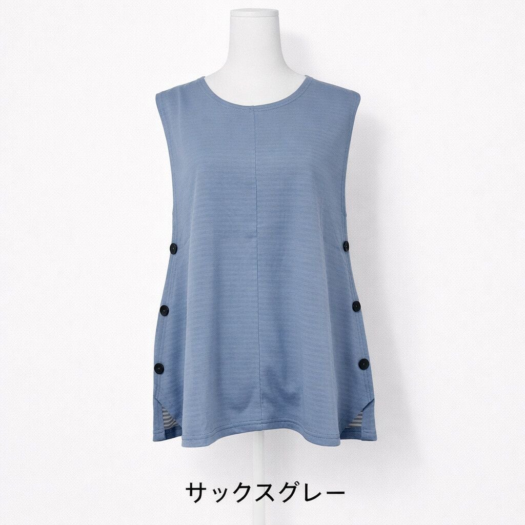 見た目は普通のボタン留めですが、飾りボタンで実際はワンタッチテープ留めの前開きの服ブラウスなのでおしゃれでリハビリや介護にも好適です。