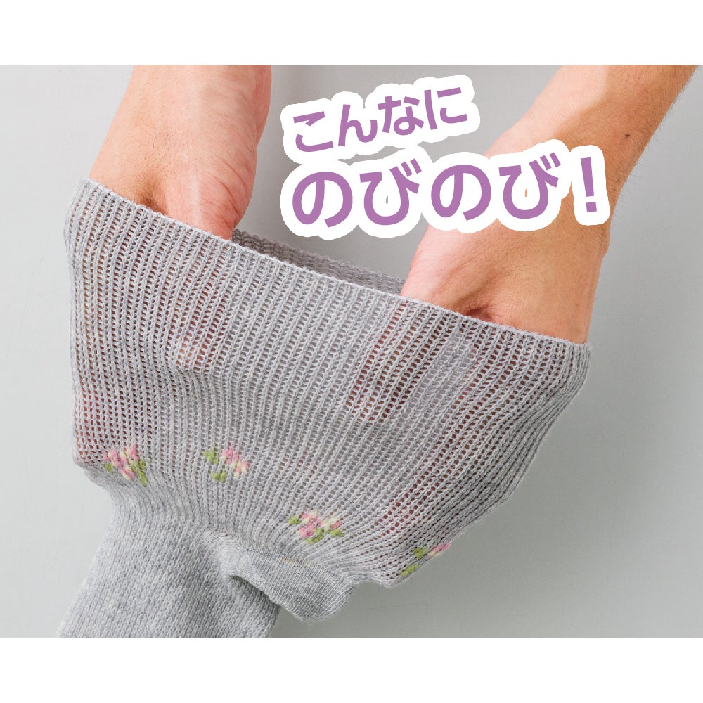 片手でも楽にはけるので、お年寄りの方、介護用などにおすすめです。日本製の便利な靴下です。