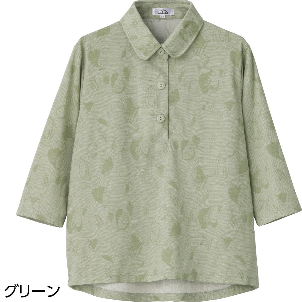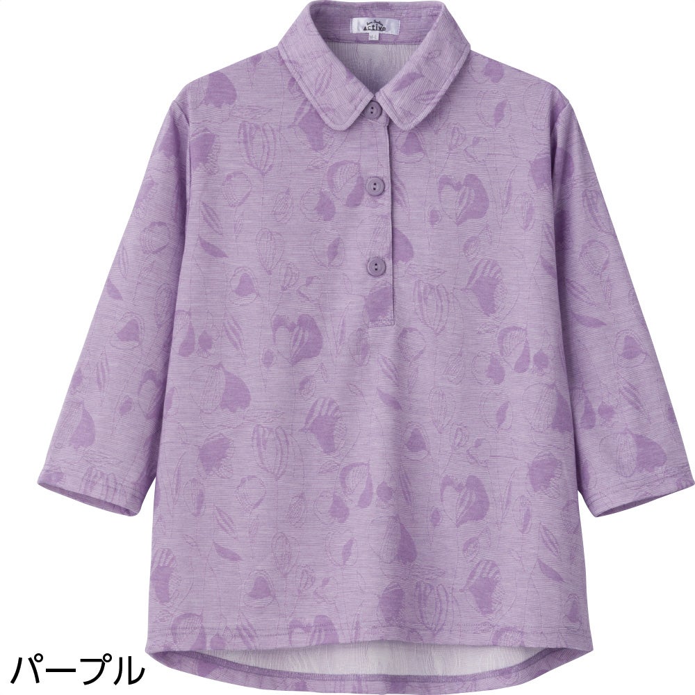 婦人シニアの普段着に、老人ホームの部屋着に好適なポロ襟シャツです。