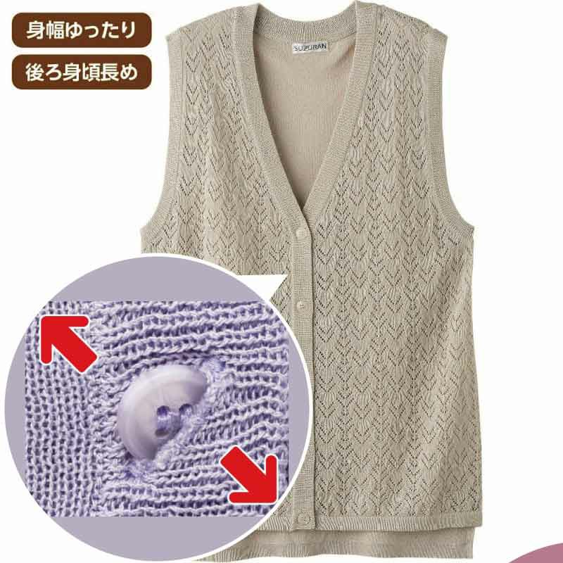 3. 婦人ニット後ろ長めV首ベストサイズ M~L