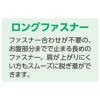 ●首回りが大きく開き、ファスナー合わせが不要のロングファスナー。