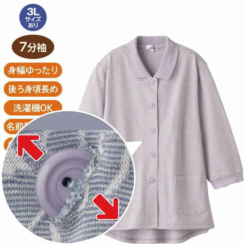 7. 婦人7分袖斜め釦ホールポロカーディサイズ M~L、LL、3L