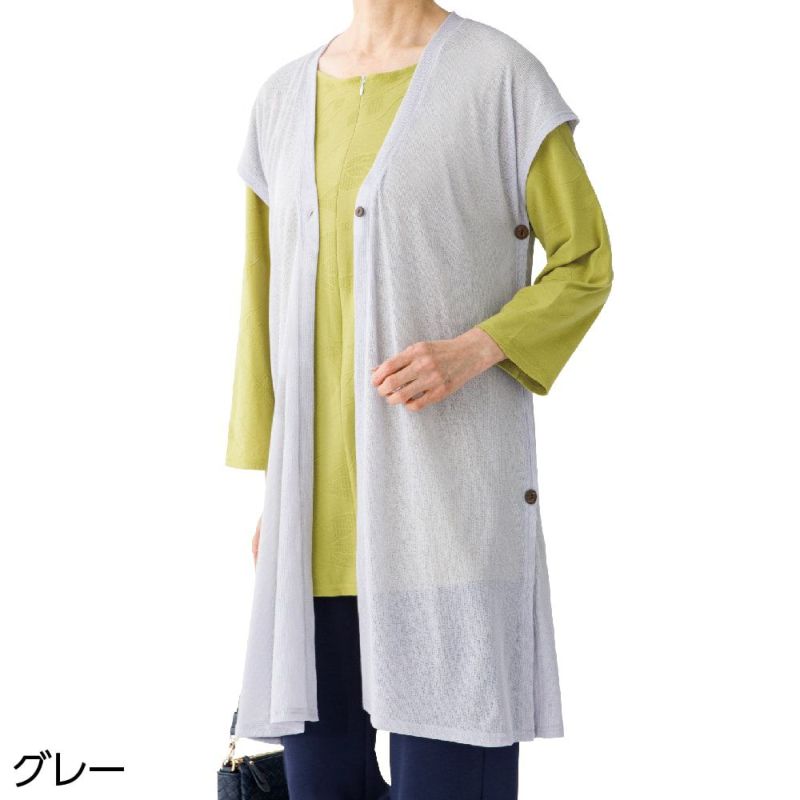 4. 婦人斜め釦ホール1釦ロングベストサイズ M~L